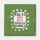 Le texte gras "Les faits ne sont pas des choses délicates" est centré sur un arrière - plan vert. Le texte noir et orange foncé est posé sur un rectangle blanc avec de grands points blancs texturés autour, offrant un contraste ludique sur le fond de couleur solide.