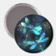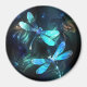 Deux libellules transparentes, lumineuses, turquoise, artistiquement dessinées sur l'arrière - plan de nuit avec des algues luminescentes et des lucioles. libellule éclatante.
