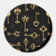 Seamless pattern of antique, gold and silhouette keys on black background.