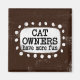 "Les propriétaires de chats ont plus de plaisir" est un design de texte mignon en brun avec du texte noir, avec une forme d'accent blanc et des points blancs texturés blancs qui l'entourent.