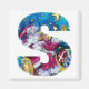 S lettre alphabet gras lettre design initial. Peinture musicale, capricieuse et artistique à l'aquarelle avec des couleurs vives rouge, bleu, jaune, blanc par Bulgan Lumini (c). Le Père Noël joue du violon dans la nuit d'hiver enneigée sous le ciel bleu, la lune et les étoiles jaunes avec un chouette amusant, expressif, chat et son sac de Noël plein de cadeaux colorés com