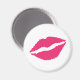 Des lèvres roses amusantes et amusantes sur un arrière - plan blanc décorent cet aimant.