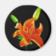 Lily orange vibrant en contraste saisissant sur un fond noir dramatique.