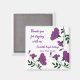 Vous cherchez un moyen unique d'accueillir vos invités et de mettre votre location de vacances à l'écart de votre concurrence? Cet aimant carré présente des fleurs violettes vives qui se déplaçant le long de l'aimant du réfrigérateur. Le violet clair des fleurs est complété par les feuilles et les tiges vert foncé. "Merci pour rester avec nous", ainsi que votre nom de maison et vos coordonnées peuvent être facilement customisés pour répondre à vos besoins.