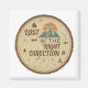 Embrace the spirit of exploration with this vintage-style “Lost in the Right Direction” design. Featuring a retro circular badge with mountains, a rising sun, compass needle, sailboats, airplanes, and dotted adventure paths, this artwork captures the joy of wandering and discovering new places.