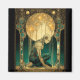 A kneeling android communes with light and nature beneath a radiant halo, blending technology, spirituality, and transcendence in a visionary tableau.