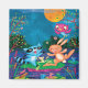 Artiste : Elisa Chavarri | Racon et lapin et grenouille et hibou dansent dans l'étang la nuit avec une grande lune d'automne au-dessus d'eux dans le ciel