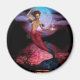 C'est une magnifique sirène à tête rouge devant une lune mystique.
