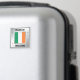 A square design featuring the Irish tricolour flag. There are decorative stars on either side of the flag, and are coloured in the shades of the tricolour flag. The design elements are situated on a faux silver background.