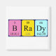 Brady a été décrit comme B Ra Dy (Boron Radium Dysprosium) sur un aimant pour le scientifique en vous.