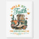 Design paisible et coloré avec une scène automne/automne avec des citrouilles, des papillons, des bottes de cowboy et des fleurs d'automne. Le texte inspirant et coloré dit : "Marchez par la foi même quand vous ne pouvez pas voir. 2 Corinthiens 5:7". Ce design est disponible sur une grande variété de produits.