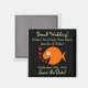 Mariage à thème sur la plage Save The Date Les Magnets présentent un petit poisson caricaturé orange sucré et de minuscules coeurs rouges sur un arrière - plan noir. L'invitation de mariage de destination humoristique est parfait si votre événement heureux aura lieu sur une plage de sable noir, une île tropicale, au bord de la piscine ou le yacht club local. Si c'est près de l'eau, cette petite fille veut l'annoncer ! Une petite invitation au poisson rouge qui sourit avec un sourire sidérant ajoute une légèreté à laquelle on s'attendrait avec une occasion si joyeuse.