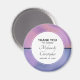 Un aimant de remerciement mariage avec un arrière - plan design et moderne. Couleurs roses et violettes tourbillonnant autour créant un élégant effet dégradé. Un cercle superposé avec votre texte à l'intérieur.
