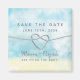 Calligraphie simple et moderne, mariage bleu élégant enregistrer l'aimant invitation de date avec faux coeur de corde argent.
