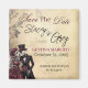 Squelette gothique rustique Ce faire-part de mariage d'Halloween présente un couple de squelettes, de belles fleurs et un cimetière dressé contre un arrière - plan en papier vieilli. L'invitation mêle romantisme, élégance et effroi dans un design unique et captivant.