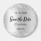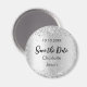 Un aimant Enregistrer la date pour votre mariage. Un arrière - plan faux argenté, du texte noir. Décoré de confettis. Personnalisez et ajoutez vos noms et votre date de mariage.