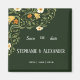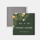 Un vert enregistrer la date mariage aimant à envoyer à vos amis et à votre famille annonçant votre future date mariage. Le design se compose d'une image fleurie décorative de plantes d'escalades et de vignes fluides avec de petites fleurs d'or, d'orange et de blanc. La date et le nom de la mariée et du marié peuvent être personnalisés très facilement dans les options.
