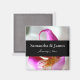 Attrayant aimant mariage d'orchidées blanches et violettes personnalisé avec vos noms et votre date.
