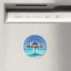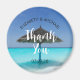 Un aimant de remerciement de mariage avec une photographie d'une plage tropicale panoramique aux Maldives. Une plage de sable blanc et des eaux cristallines avec un parasol de chaume solitaire. Isolé et serein.