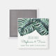 Un mariage tropical sauve l'aimant de la date avec de grands feuilles monstères et une typographie retro moderne inspirée de la plage de la ville.