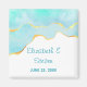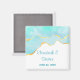 Un aimant pour sauvegarder la date du mariage avec un design estival serein. Image aquarelle verte turquoise / aqua avec une bordure dorée fausse ondulée. Élégant et charmant.