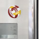 Cet aimant à thème volleyball avec des couleurs d'équipe personnalisées présente l'image réaliste d'un volleyball avec marron, or et panneaux blancs sur lequel vous pouvez customiser le nom du joueur et le numéro de maillot ainsi que le nom de l'école ou du club et le nom de la mascotte dans une police de style lettre variée - par katz_d_zynes