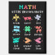 Playful math artwork with plus, minus, times, divide, equals, percent, greater than, less than and not equal. A friendly learning themed layout that shows how math concepts stay in balance. Great for teachers and students.
