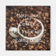 Photo de fond d'une tasse de café remplie de grains de café et d'une citation amusante "Que votre café arrive avant que la réalité ne le fasse"