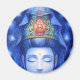La déesse bouddhiste Kuan Yin médite dans les bleus de minuit, reproduite à partir de la peinture d'art spirituel "Midnight Kuan Yin" de Sue Halstenberg.