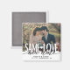Un mariage élégant et moderne enregistrer l'aimant date avec une photo, typographie script même amour, date différente, nouvelle date du mariage et l'emplacement.
