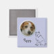 Cadre photo ronde personnalisable Pet Memorial Frame une photo d'un ami spécial et créer une mémoire chère. Cet aimant photo à thème pour chien est parfait pour votre pooche préférée. Il a un trou rond pour ajouter la photo de votre chien et vous pouvez taper le nom de votre chien sous la photo. Le dessin à l'encre présente un chien assis. Disponible dans un arrière - plan bleu clair apaisant avec un cadre de look argenté.