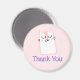 Un aimant de remerciement avec l'illustration d'un mignon chaton endormi. Les yeux fermés ont l'air heureux et paisible. Sur un arrière - plan rose pâle.