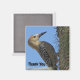 Dites merci avec ce bel aimant photo Gila de pic-bois. La photo capture un pic de Gila alors qu'il s'accroche à sa grande maison de cactus saguaro. Le pic de Gila est couramment observé dans le désert du sud-ouest et possède des ailes noires et blanches et des plumes de tête rouge vif. Le "Merci" peut être customisé sur cet aimant frigo d'appréciation si vous le désirez.