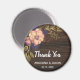 Mariage en bois rustique et élégant merci pour l'aimant avec fleurs roses aquarelles.