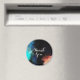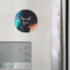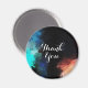 Un aimant de remerciement avec un design abstrait moderne. Peindre des taches et des couleurs tourbillonnantes en turquoise, blanc, orange et noir avec des touches de bleu.