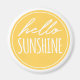 Éclairez la journée avec ce mignon aimant avec la typographie "hello sunshine" manuscrite en blanc sur un arrière - plan jaune et blanc.