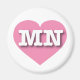 Cet aimant est doté d'un coeur rose vif contenant les lettres coques maxi, blanches et audacieuses MN, l'abréviation officielle du Minnesota, l'état étoilé du nord.