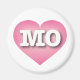 Cet aimant est doté d'un coeur rose avec un centre blanchi contenant les lettres coques en haut et en blanc MO, l'abréviation officielle du Missouri, l'état de show me.