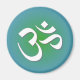 Un simple symbole OM blanc sur un arrière - plan orange vert et bleu. C'est serein et élégant. Super à porter en cours de yoga, ou à offrir en cadeau!