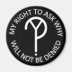 Pourquoi ? Mouvement Magnet avec le slogan "Mon droit de demander pourquoi ne pas être refusé".
