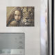 Jeune fille rêvant d'être avec son animal favori, le lion.