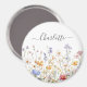 Voici notre aimant de monogramme élégant à l'aquarelle Fleur sauvage colorée. Présentant une illustration à l'aquarelle d'un jardin de fleurs sauvages colorées et un texte modifiable avec une police de calligraphie qui peut être personnalisée. Convient comme cadeaux de mariage de printemps ou d'été pour les invités et la famille.