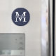 Monogramme personnalisé et cadeaux de nom avec monogramme blanc personnalisé dans le style de police serif classique avec boîte de nom au milieu du monogramme sur arrière - plan bleu marine.