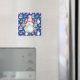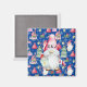 Motif de Noël Blue Père Noël Gnome pour aimant de cuisine de vacances. Dispose d'un motif arrière - plan bleu avec des gnomes, des cadeaux, des saints, des sucres de canne, des arbres de Noël et un sac Père Noël. Personnalisez ceci avec vos monogrammes.