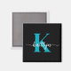 Ce simple et élégant aimant carré noir de 2" avec votre prénom dans une police de script tendance en blanc et votre première initiale dans une police casquette moderne en turquoise est parfait pour vous. C'est design, tendance et pourtant très classique. Il aura l'air fabuleux sur votre meuble, réfrigérateur, bureau.