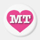 Cet aimant est doté d'un coeur rose chaud et vibrant contenant les lettres coques supérieures blanches en gras MT, l'abréviation officielle pour Montana, l'état trésor.