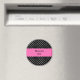 Motif à pois noir et blanc. Pois blancs sur le noir et au milieu il y a un rectangle rose chaud où vous pouvez ajouter votre texte.