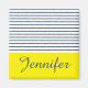 Motif moderne rayé blanc, bleu et jaune avec nom personnalisé