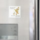 Un aimant carré blanc avec une citation d'Adlai Stevenson, "Ce n'est pas les années de votre vie, mais la vie de vos années, qui compte !" illustré par un vieil homme dansant sur un gramaphone, d'une aquarelle de Judy Adamson. Également disponible en tant que carte de voeux.