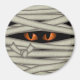 Une momie déplaisante et enveloppée avec des yeux orange vifs et des bandages de gaze classiques ornent cet aimant rond du réfrigérateur. Également disponible dans une palette de couleurs vertes. Cherchez ID685 pour voir la coordination des fournitures et accessoires de la fête avec ce grand motif momie.